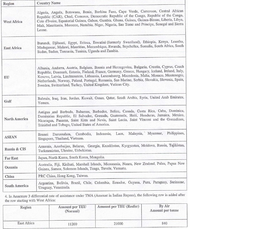Transport and Marketing Assistance for Agri Product for East Africa Allowed at Rs.