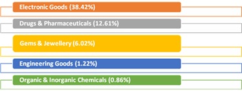 including electronic goods, drugs & pharmaceuticals, Gems & Jewellery, Engineering Goods, Marine Products, Organic &